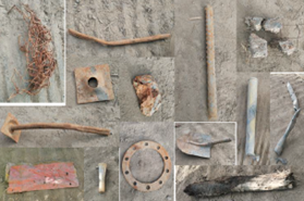 - Metals: bolts, plates, pipes, wire mesh, shovels.